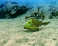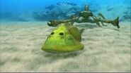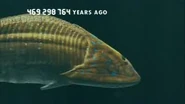 Cephalaspis appeared in the first episode. Several were seen swimming away from a Brontoscorpio. One was feeding until a Brontoscorpio appeared. It changed direction when it detected a Pterygotus underneath the seabed and escaped while the Brontoscorpio got captured and eaten. Later, a large shoal of Cephalaspis was seen swimming to their spawning grounds further inland. In the process, several were killed by a group of Brontoscorpio, that came across them by luck.