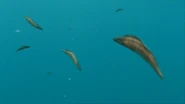 A school of Haikouichthys were seen in the first half of the episode. They harassed a wounded Anomalocaris after it lost a fight. In the end, one started evolving into Cephalaspis.