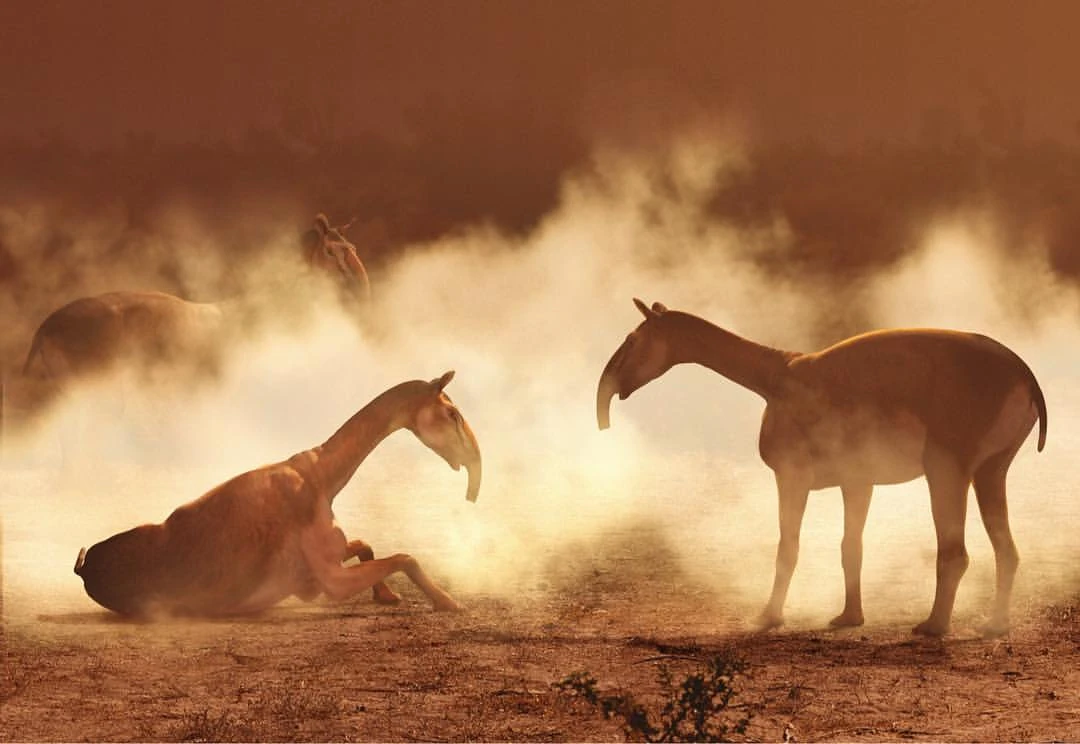 On occasion, both Macrauchenia males and females with calves would wander away from the main herd - but that just made them more vulnerable with predators, who would ambush Macrauchenia before the litopterns would run away.