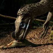 | “ | The culprit is an Ornitholestes, a 2 meter long carnivore that is closely related to the dinosaurs that will evolve into birds. Normally he hunts small lizards and mammals in the forest. The hatchling is an extra treat. | ” |