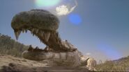 Days later, during the annual Argentinosaurus migration to the egg laying site, the Sarcosuchus was seen basking on the bank. However, the presence on the Argentinosaurus caused it to retreat to the water. Later, when Nigel was watching the Argentinosaurus lay their eggs, the Sarcosuchus lumbered out of the water and attacked Nigel and the cameraman.