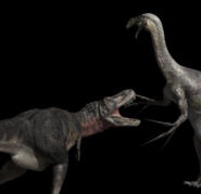 Tarbosaurus is one of the viewable dinosaurs in the app. In the Diet of Dinosaurs section, it is seen killing a Gallimimus. It is also seen in the Therizinosaurus page fighting the dinosaur. It's design resembles the WWD Tyrannosaurus rex.