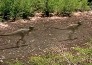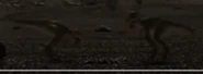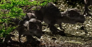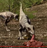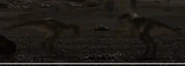 While the juvenile Tyrannosaurus rex were eating, two of them abused their sibling severely. This chick disappears two days later, possibly having been killed by its older and more successful siblings. The remaining T. rex juveniles then began to explore the area around them while their mother rested, pestering a Dinilysia they found during their brief exploration.