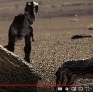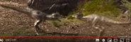 During the introduction to the series when a glimpse of the cretaceous is shown, the mother Tyrannosaurus can be seen scaring off the male as the narrator describes the dinosaur.