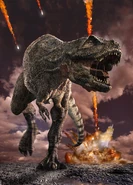 The next morning she dies from her fatal injuries with her young waiting for her to wake her, not knowing her fate. Hours later the K-T Extinction occurs. The juvenile Tyrannosaurus first seen the bright light of the impact, seconds before a shock wave blows them away in a cloud of dust, killing them as well as their species.
