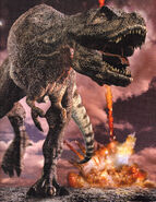 Tyrannosaurus was the apex predator of North America during the last days of the Late Cretaceous. It preyed on many of the herbivores in the area including Anatotitan, Triceratops, and Torosaurus. It had no predators, but the unborn would fall victim to air pollution from nearby volcanoes that prevented their egg shells from forming correctly and nest raiders like Dromaeosaurus and the mammal Didelphodon. The only dinosaurs T. rex feared were the armored Ankylosaurus and other individuals that belonged to its own genus who were willing to commit cannibalism. Tyrannosaurus was also very aggressive and territorial with the females being the most aggressive.[2][1][4]
