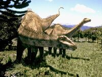 Diplodocus was a 30 meter long, 15-25 ton sauropod dinosaur from the late Jurassic time period (155 - 145 MYA) that lived on the territory of the modern Western United States. Other potential Diplodocus speciemens, as Seismosaurus, were 15 meters longer and weighed nearly 7 times as much, making Diplodocus perhaps the biggest dinosaur on Earth.