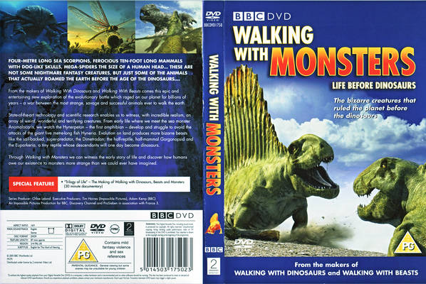 It exists as two different edits of Walking with Monsters. The first, broadcast on TV, contains text at the top and the bottom left, like predators, period, temperatures, locations and dangers. This version is commonly in 4/3, but can be found in 16/9. The second edit is the DVD edit, in 16/9. The image is much wider, but is often without the info in the top and bottom left.